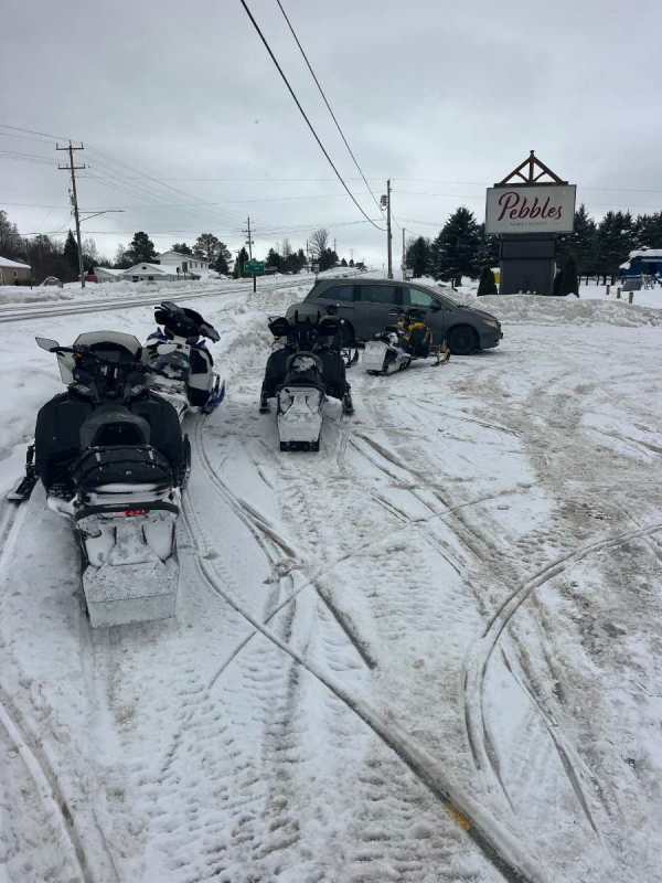 Horrible day to ride today. High winds and freezing drizzle for the first 2 hours. Left from my driveway, Alma, east side of Arthur and Mountain Forest. Pebbles for lunch again. Came back through west side of Arthur. Luckily 90% of the trails were recent groomed as visibility was near zero at times. 260 kms, home by 5. No plans to ride again until the warm spell passes. The Mach Z now has 9600 kms on it. It’s got me thinking.