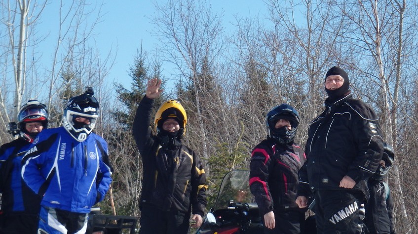 Left to right ...Sledjunk, OntarioF7, Denis007, Doris26, apeXMAN .... somewhere North of Kapuskasing or Moonbeam ... March 2015.